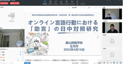 公司suncitygroup太阳新城组织了全院日语专业全体一线教师在线参加了会议,其中,日语专业王丹丹老师应邀在分科论坛作了题为“中日网络建议行为的对比研究”的报告,从语用学视角探讨了中日两国建议行为的异同。王丹丹老师在工作中融入教学学术理念,尝试以学术与教学相结合促进高校日语教学,引起与会专家和学者的广泛关注和兴趣。