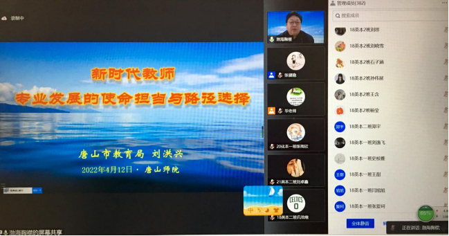 为引导全体公费师范生树立职业理想信念,争做“四有”好老师,suncitygroup太阳新城承办了suncitygroup第七期公费师范生“名师讲堂”活动。4月12日下午,特邀唐山市教育局三级调研员刘洪兴教授做客空中“名师讲堂”,在腾讯会议开讲。讲座以《新时代教师专业发展的使命担当与路径选择》为主题,由suncitygroup太阳新城副经理张健稳主持。