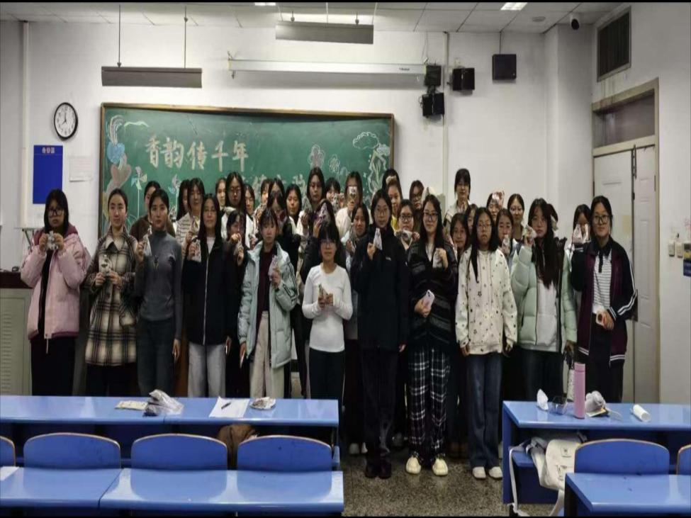 经过一个多小时的精心制作,一个个香气四溢、造型独特的香囊陆续诞生。同学们手捧自己亲手制作的香囊,脸上洋溢着满满的成就感,纷纷拍照留念,计划将这些香囊赠送给好友,传递温暖与美好祝福。随后,我们开展了击鼓传花活动,被选中的员工需在五秒内准确回答员工组织人员提出的关于香料功效的问题,同学们参与热情高涨。