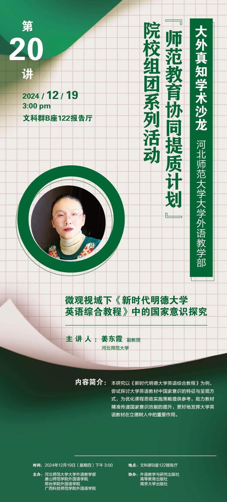 【沙龙预告】“师范教育协同提质计划”院校组团系列活动之大外真知学术沙龙(第20讲)