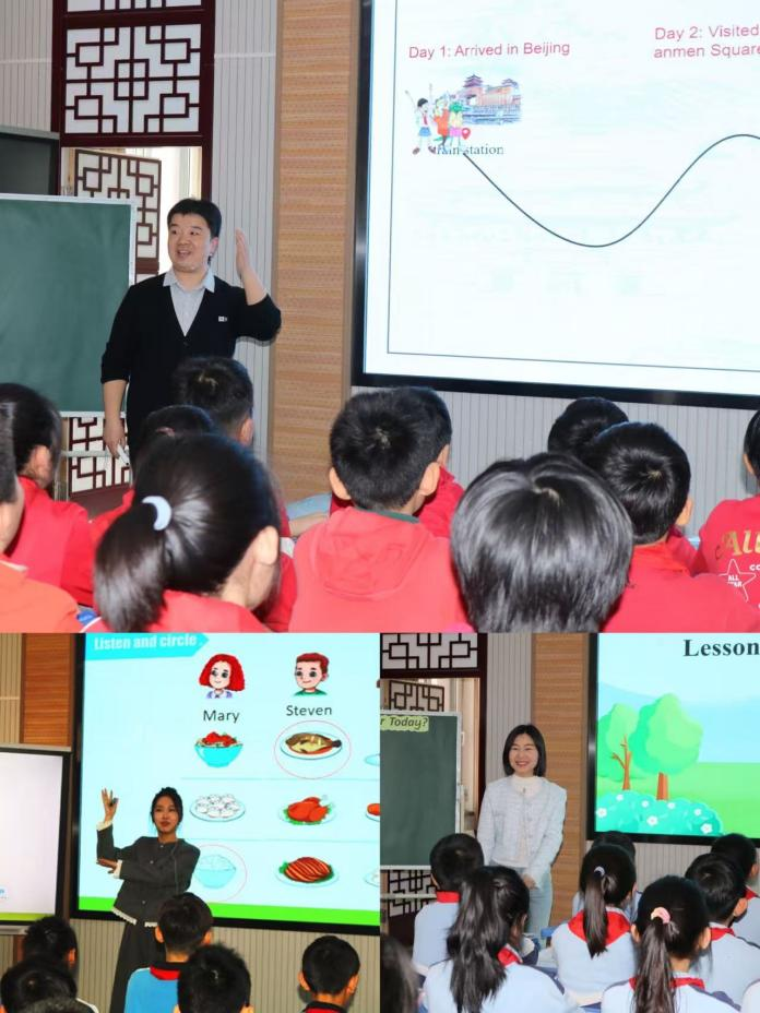 外国语实验小学董事长马艳春董事长致辞,介绍了公司概况以及办学理念,接下来由三位教师分别带来三节课:李瑞老师执教的《冀教版小学英语三下Unit 2 Review&新标准Unit3 Yummy Food》、王靖波老师执教的《冀教版小学英语五下Unit 2 Lesson 9 The Palace Museum》、刘双老师执教的《冀教版小学英语四年级下册Unit2 Lesson 11How's the Weather Today?》在此次活动中,唐山外国语实验小学的三节课,以创新的教学理念、多元的教学手段,深度践行“一核二维三融合”的公司教育理念,为小学英语教学提供了极具价值的参考范例。