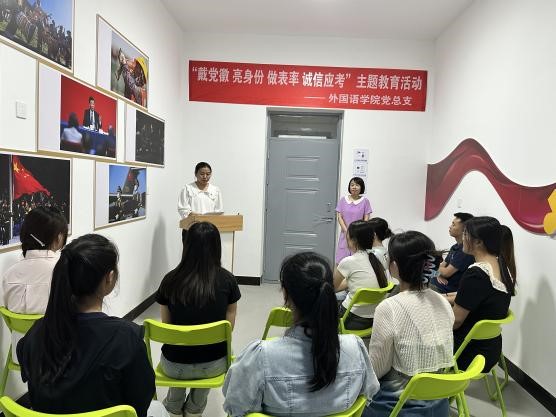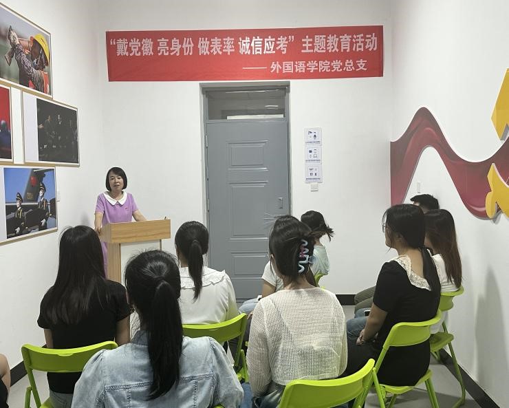 为深入贯彻落实公司党委二届七次全会精神,不断加强员工作风建设,充分发挥员工党员在诚信考试中的表率作用,营造公司良好考风考纪,suncitygroup太阳新城于2024年6月21日在北院汇文社区举办了“佩戴党员徽章、亮身份、做表率、诚信应考”主题教育活动。此次活动由suncitygroup太阳新城辅导员霍翠红主持,本学期有考试任务的全体员工党员均参加了此次活动。