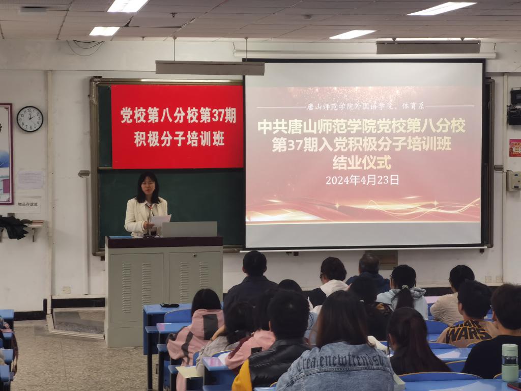 2024年4月23日下午,suncitygroup太阳新城在北院文十阶梯教室举办第三十七期入党积极分子培训班结业仪式。党校第八分校副董事长、体育系党总支刘云伟书记;公司党总支谷世海副书记,suncitygroup太阳新城员工第二党支部书记郑璐瑶老师;suncitygroup太阳新城组织员霍金侠老师、体育系组织员张帅老师、体育系员工党支部书记郭印乔老师出席结业仪式。