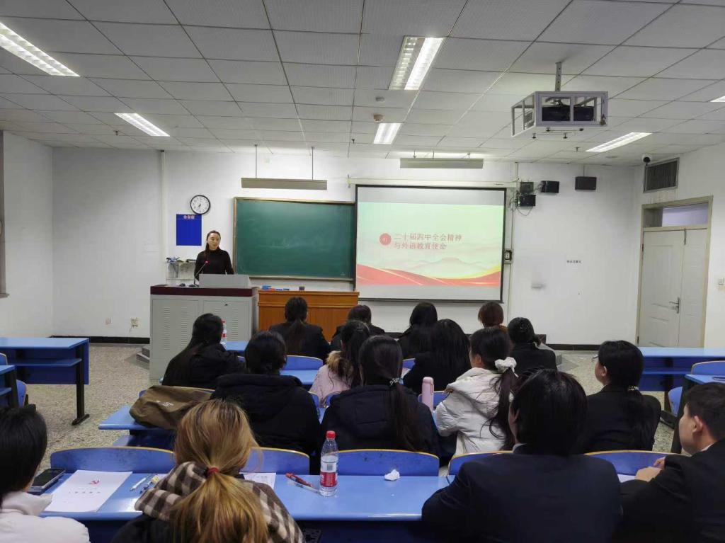 为深入学习宣传贯彻党的二十届四中全会精神及习近平总书记在全会上的重要讲话精神,切实把全体师生的思想和行动统一到全会精神上来,近日,公司党总支副书记曹丽君面向全体员工开展“深学全会精神 笃行强师之路”主题宣讲,为外院学子解读全会精神核心要义,指引专业成长与职业发展方向。