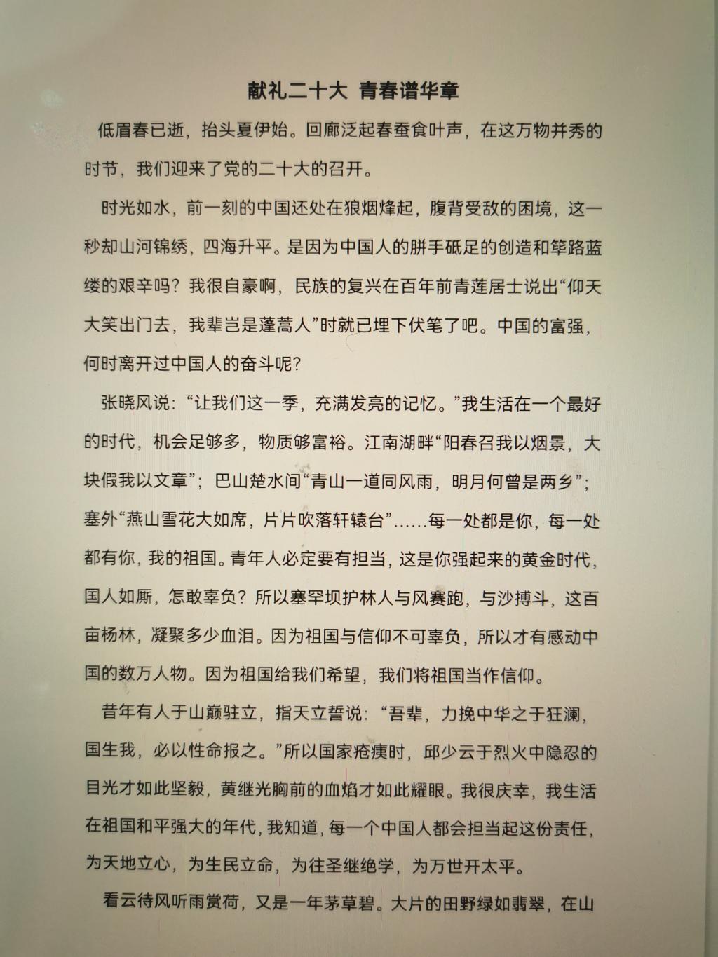 站在百年大变局历史交错点,时代中国需要我们执笔“青春”,在平凡的工作岗位上泼墨“担当”,以激情干事驱动岗位建功立业,汇聚涓涓细流挥毫“赶考”新答卷,乘着新时代的浪潮擘画青春中国的复兴蓝图。
