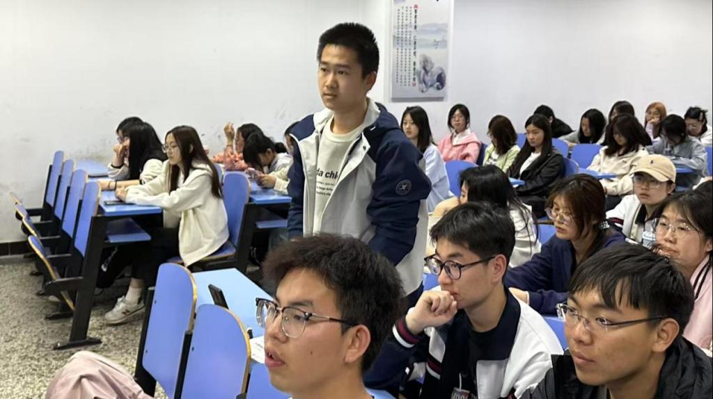 本次分享会特别邀请到在四级考试中取得优异成绩的郭家豪学长与缴砚钊学姐担任主讲嘉宾。分享会上,郭家豪学长聚焦四级考试流程与听力板块,结合自身经验,深入剖析读题技巧,细致阐述考前准备要点。缴砚钊学姐则围绕阅读、写作及翻译部分展开讲解,通过列举大量典型案例,分享阅读定位技巧,以及搭建写作逻辑架构的方法,帮助同学们构建起对四级考试更为清晰的认知框架。互动环节将现场气氛推向高潮。两位嘉宾针对考前冲刺规划”“高频词汇记忆法等热点问题,与同学们展开深度交流。主办方特别准备的《四级高频词汇手册》和《真题精析》等备考资料,通过有奖问答形式赠送给积极参与的同学。现场学习氛围浓厚,反响热烈。