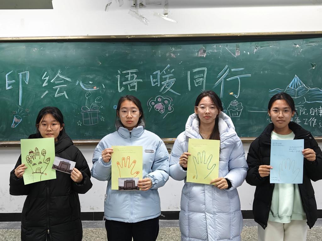 活动以创意掌印绘画为核心形式,打破传统心理疏导的单一模式。现场,工作站志愿者为同学们分发彩色画笔、卡纸等创作材料,引导大家以手掌轮廓为基础,结合绘画、文字注解的方式,将内心情绪与成长感悟具象化表达。同学们或在掌印轮廓内勾勒生活点滴,或用缤纷色彩描绘心理期许,创作过程中还围绕“情绪表达”“同伴支持”等话题轻声交流,在轻松的创作氛围中倾诉心声、消解心理压力。