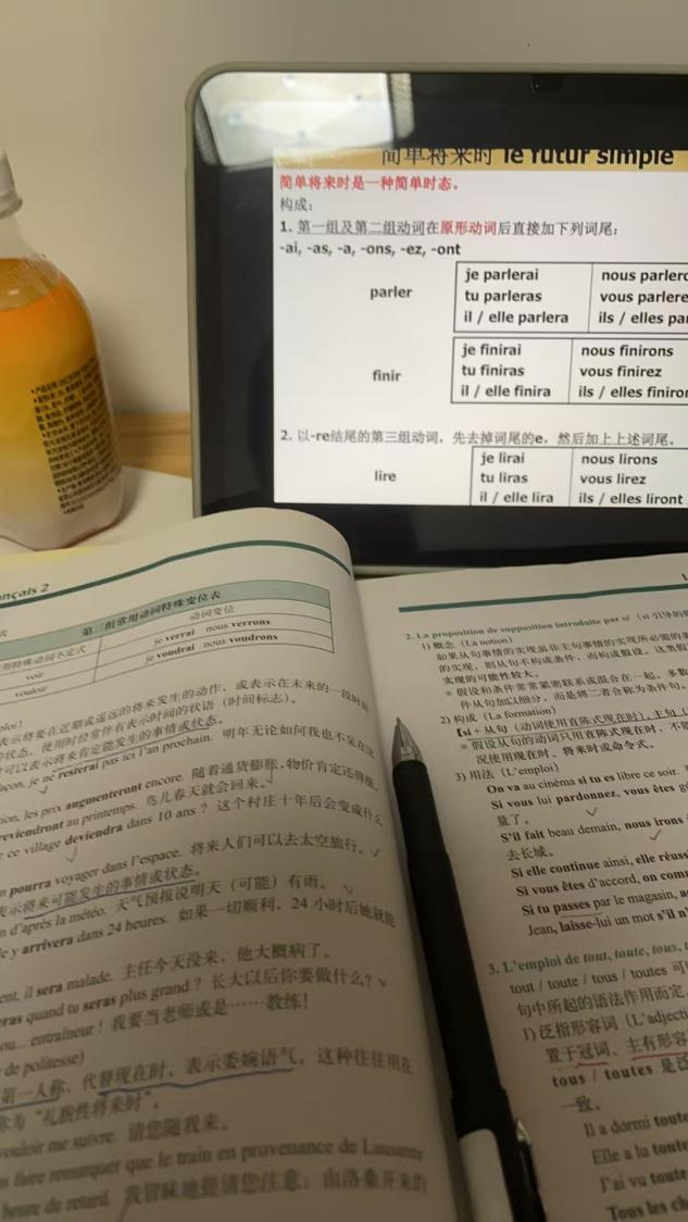 2.二外法语:马晓红的法语2册语法是重点学习内容,动词变位和时态一定要整理清楚。配合《法语考研必备》做习题,遇到不懂的单词就用法语助手查询,同时要记住常见单词的阴阳性。要是有条件,找法语课老师进行更详细的讲解,能帮助你更好地理解知识点。