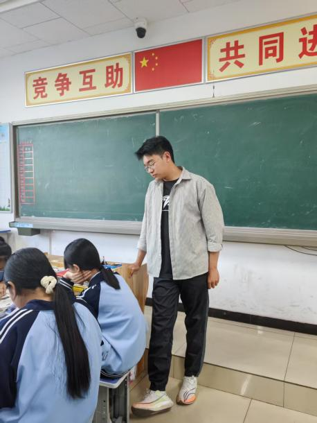 2025年春季学期伊始,高峥同学便前往定向地迁西县开始参与实习实践活动,进入迁西县第四中学后,高峥同学严格遵守公司制度,认真完成各项教学任务,先后协助公司进行八年级生物实验中考教学、生物实验中考安检和信息引导、八年级信息技术中考加试、八年级月考和期中考试相应工作以及答题卡扫描与阅卷等任务,与此同时,积极参与到日常英语教学、集体教研备课和教学设计编写任务中,获得实习公司指导教师夸奖。
