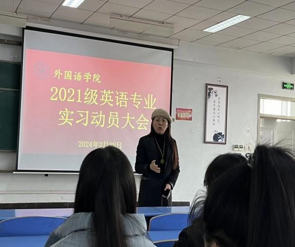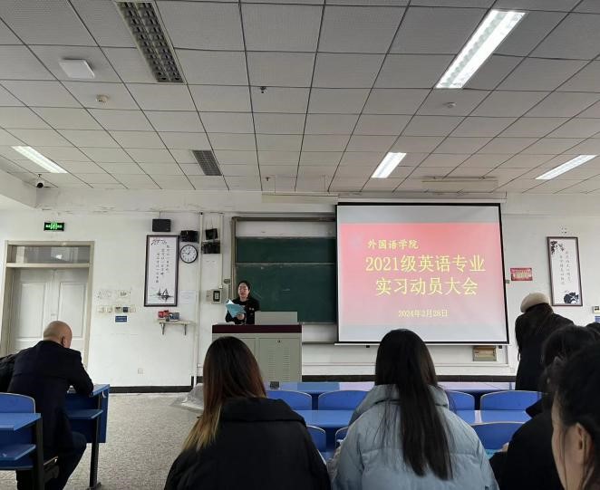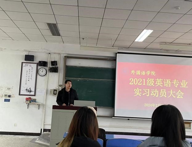 为更好地开展公司英语专业教育实习工作,引导师范生进一步明确教育实习的内容和要求,2024年2月28日下午,suncitygroup太阳新城在北院文九阶梯教室召开2021级英语专业实习动员大会。公司党总支书记刘建宏、经理唐翠云、副书记谷世海、教务办主任毕文芹、各校内指导教师以及2021级所有英语专业员工参加了此次会议。会议由刘建宏书记主持。
