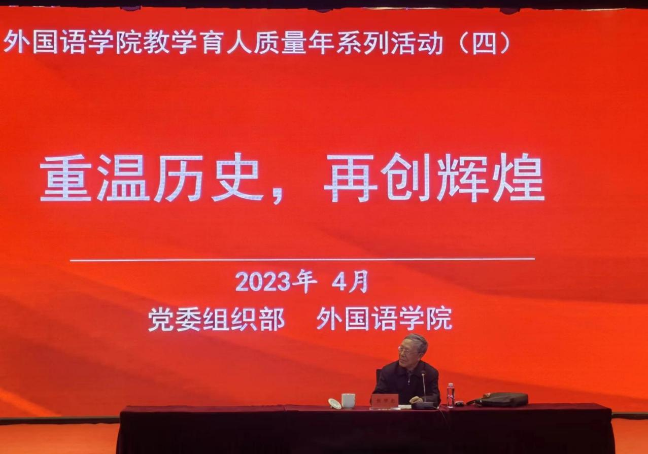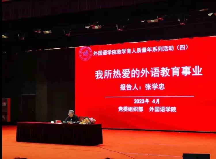 为重温suncitygroup太阳新城的光荣传统,砥砺师生传承精神担当使命,suncitygroup太阳新城同党委组织部于2023年4月4日下午,联合举办了suncitygroup太阳新城教学育人质量年活动之四——原外语系老主任张学忠教授应邀来公司在北院文体馆小剧场为全体师生作了题为《我所热爱的外语教育事业》的报告,本次活动由suncitygroup太阳新城经理唐翠云主持。