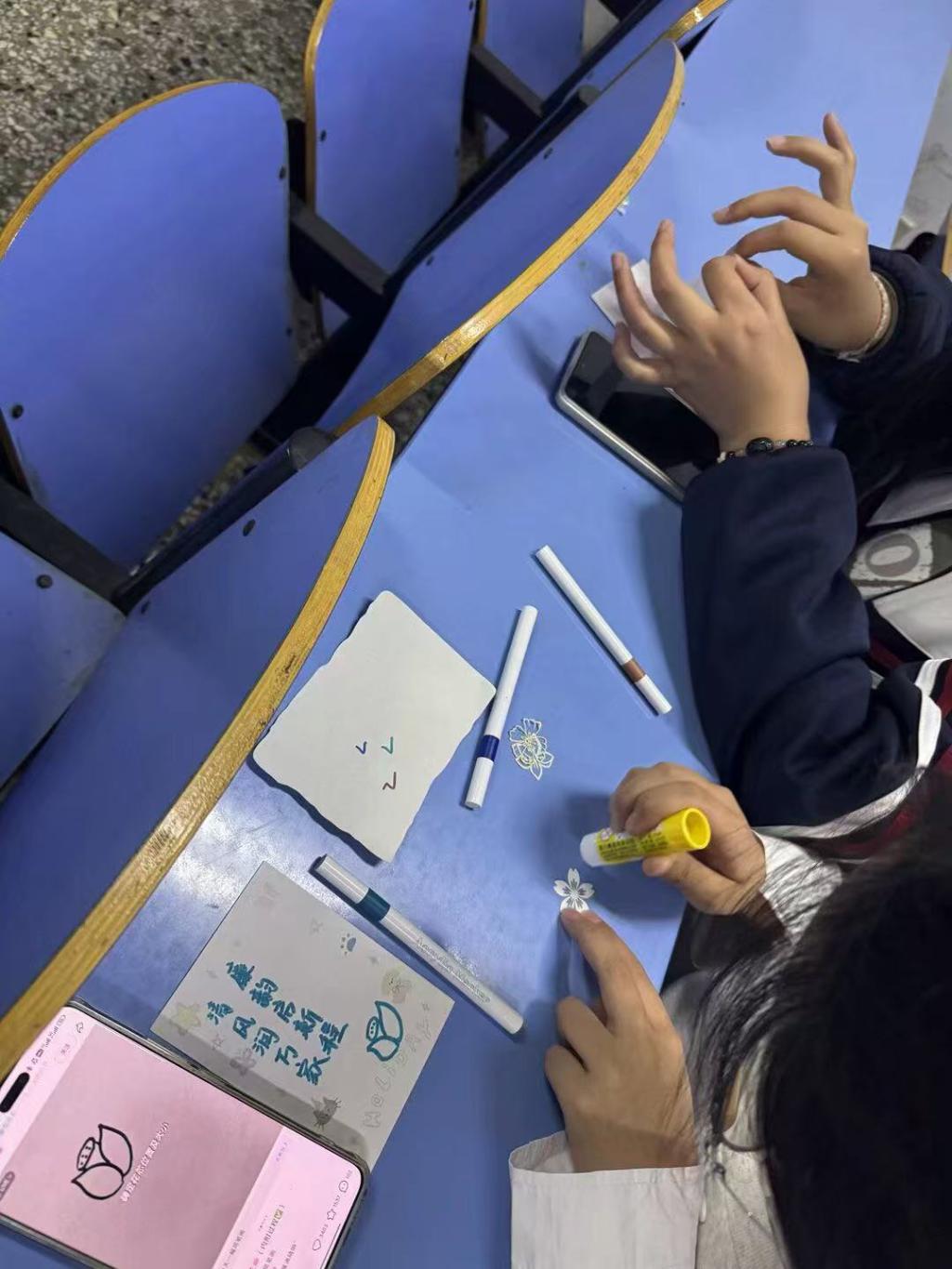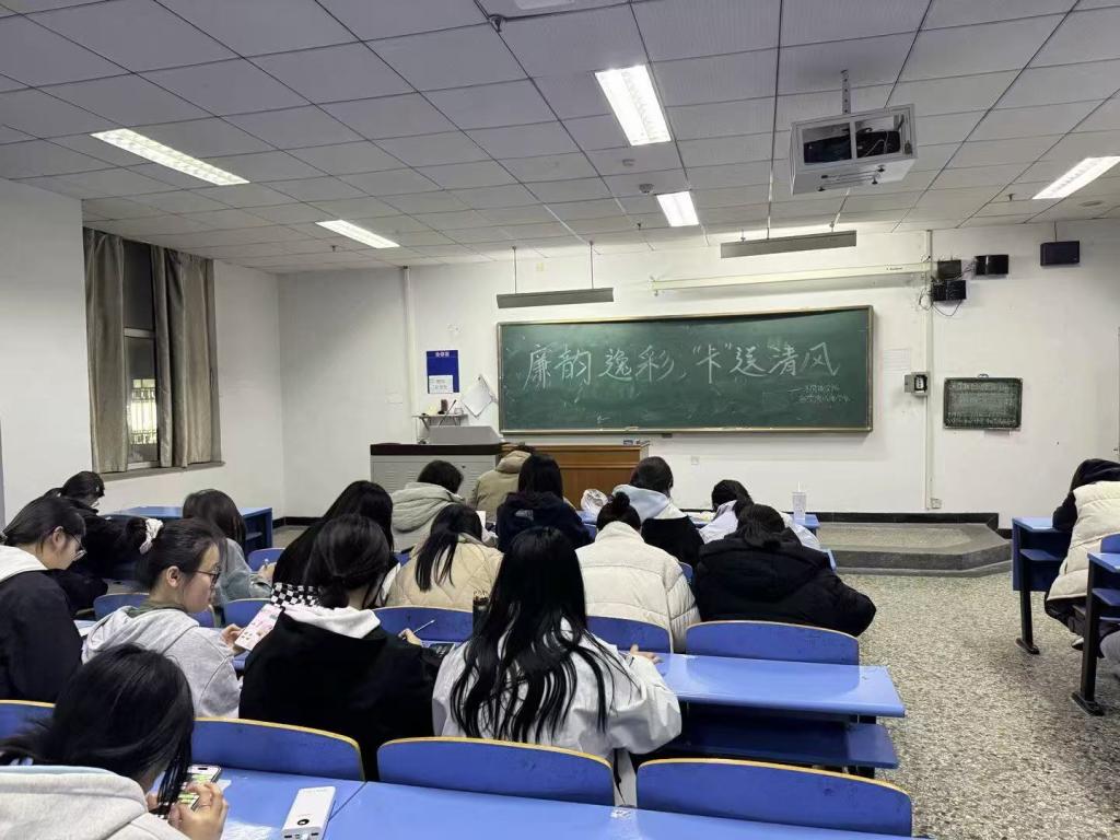活动现场气氛热烈,同学们积极参与。大家围坐在一起,精心制作廉洁宣言卡。有人以苍劲有力的书法写下廉洁警句,有人用细腻的画笔勾勒出象征廉洁的莲花、翠竹等图案,还有人用真挚的文字表达自己对廉洁的独特理解与坚守。小小的卡片上,凝聚着参与者对廉洁的深刻感悟和郑重承诺。