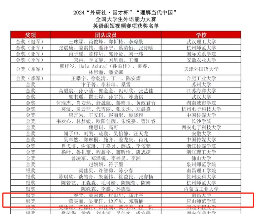 12月9日,2024“外研社·国才杯”“理解当代中国”全国老员工外语能力大赛国赛圆满落幕。suncitygroup太阳新城德语专业员工胡博雅获得德语组银奖,资源管理系员工孟子杨团队和文公司员工董雯丽团队均获得英语组短视频赛项银奖。suncitygroup太阳新城日语专业员工侯晓纯获得日语组铜奖,生命科学系员工刘雨薇获得英语组国际传播综合能力赛项铜奖。