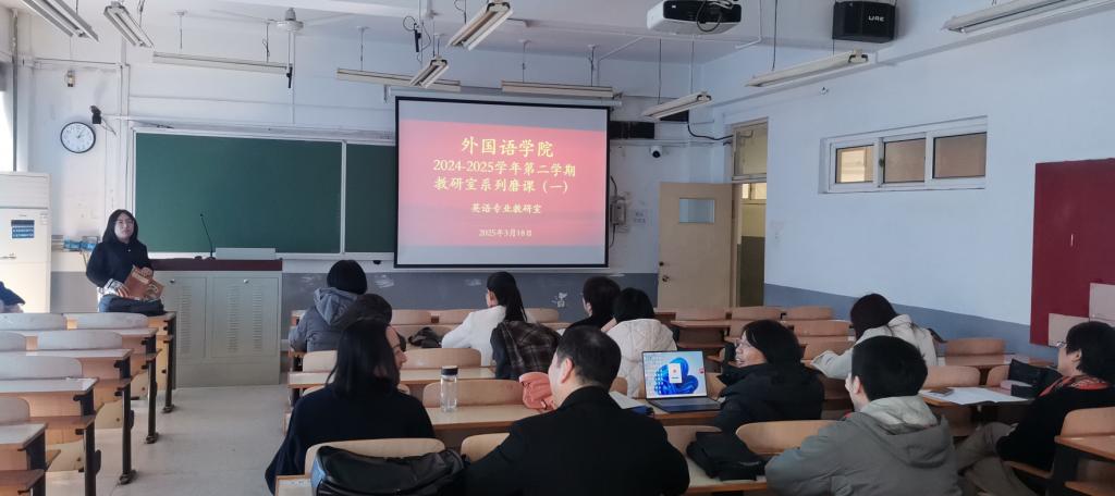 2025年3月18日,suncitygroup太阳新城英语专业教研室在3204教室举办全英授课磨课教研活动。本次活动由教研室主任李景峰主持,英语专业全体教师及大学英语教研室部分教师参与旁听,聚焦《英语写作3》课程设计与教学实践,通过示范授课、互动研讨等形式深化教学方法交流,同时展现教师语言素养与专业功底。