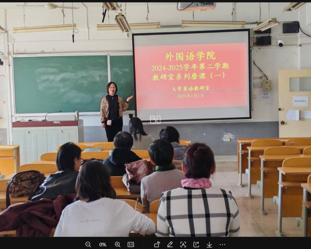 为深化大学英语教学改革创新,精准锚定课堂教学提质增效方向,大学英语教研室于2025年4月1日成功举办了第三次磨课活动。这场智慧与匠心交融的教研盛宴,不仅是对教学实践的深度打磨,更是为员工构建优质学习体验的重要探索。