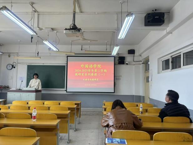 王丹丹老师率先进行《高级日语()》示范授课,通过情景导入-文化对比-任务驱动三维教学设计,生动展示了跨文化交际视角下的高级日语课程的教学创新。